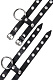 Стильный БДСМ-аксессуар изготовлен из черной натуральной кожи полностью вручную. Материал качественный, прочный и тактильно приятный на ощупь. Каждый ремешок по всей длине оснащен пятью металлическими люверсами, чтобы идеально подобрать размер запястья для сабмиссива. Крепкий замок фиксирует необходимый захват. Девайс идеально подходит для долговременного использования. Наручники соединены между собой цепью с помощью надежных карабинов. Ширина манжет - 5,5 см.