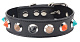 Ошейник с цветными шипиками из искусственной кожи с регулируемым ремнем. Ширина - 3,3 см.