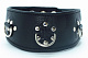 Чёрный кожаный ошейник с полукольцами и клёпками.