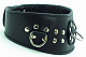 Кожаный ошейник для эротических игр имеет три крепления для поводка или наручников. Выполнен с применением металлических клепок.