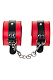 Красно-черные кожаные наручники со сцепкой