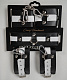 Оковы состоят из двух деталей: основа прямоугольной формы из натуральной кожи черного цвета и ремешок белого цвета с прочной хромированной фурнитурой в виде овального кольца. Расположение ремешка через прорези основной части является декоративным решением, а также служит для лучшей регулировки размера. В комплект входит соединительная цепочка с двумя карабинами. Длина ошейника - 47 см, ширина - 5,5 см, обхват - 34-44 см. Длина наручников - 25 см, ширина - 6 см, обхват - 15-22 см. Длина оков - 32 см, ширина - 6 см, обхват - 20-29 см.