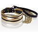 Сверкающий ошейник из натуральной высококачественной кожи, который сделает образ сабмиссива ярким, вычурным. Сочетание натуральной черной кожи с золотой декоративной отделкой вызывает ощущение роскоши и дерзкой сексуальности. Ошейник можно использовать, как с поводком, для управления сабмиссива, так и без него, в качестве фетишного аксессуара. Цепочка золотистого цвета крепится к полукольцу на ошейнике при помощи карабина. Для удобного использования на конце цепочки имеется ремешок-петля. Регулировка размера и фиксация ошейника производится при помощи пряжки ремешка. Длина цепочки - 80 см.