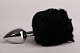 Серебристая анальная пробка c черным хвостом  Задорный Кролик