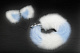 Серебристая анальная пробка с бело-голубым хвостиком и ободком-ушками