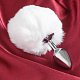 Серебристая анальная пробка с белым хвостом