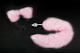 Серебристая анальная пробка с розовым хвостиком и ободком-ушками