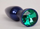 Большая синяя анальная пробка с зеленым стразом - 11,2 см.
