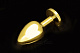 Большая золотая анальная пробка с закругленным кончиком и изумрудным кристаллом - 9 см.