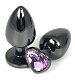 Черная гладкая анальная пробка с сиреневым кристаллом-сердечком - 7,5 см.