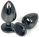 Черная металлическая анальная пробка с черным стразом - 7,5 см.
