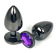 Черная металлическая анальная пробка с фиолетовым стразом - 6,5 см.