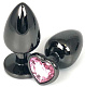 Черная металлическая анальная пробка с нежно-розовым стразом-сердечком - 6,5 см.