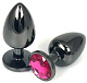 Черная металлическая анальная пробка с розовым стразом - 7,5 см.