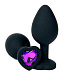 Черная силиконовая пробка с фиолетовым кристаллом-сердцем - 8 см.