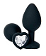 Черная силиконовая пробка с прозрачным кристаллом-сердечком - 8 см.