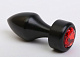 Чёрная анальная пробка с широким основанием и красным кристаллом - 7,8 см.