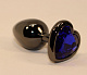 Чёрная анальная пробка с синим стразом-сердцем - 8 см.