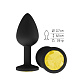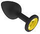 Чёрная анальная втулка с жёлтым кристаллом - 7,3 см.
