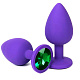 Фиолетовая анальная пробка с изумрудным стразом - 6,8 см.