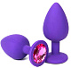 Фиолетовая анальная пробка с розовым стразом - 8 см.