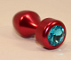Красная анальная пробка с голубым кристаллом - 7,8 см.