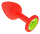 Красная анальная втулка с лаймовым кристаллом - 7,3 см.