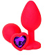 Красная силиконовая анальная пробка с фиолетовым стразом-сердцем - 8 см.