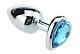 Металлическая анальная пробочка со стразом в виде голубого сердечка - 7,5 см.