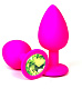 Розовая силиконовая анальная пробка с лаймовым стразом - 8 см.