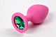 Розовая силиконовая анальная пробка с зеленым стразом - 8,2 см.