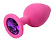 Розовая силиконовая пробка с фиолетовым кристаллом - 8,2 см.