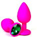 Розовая силиконовая пробка с зеленым кристаллом - 8,5 см.