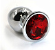 Анальная пробка из алюминия размер S. Страз в основании круглой формы, выполнен из стекла красного цвета. Упакована в вельветовый мешочек для хранения. Вес - 52 гр.