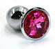 Серебристая алюминиевая анальная пробка с ярко-розовым кристаллом - 6 см.