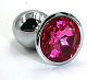 Анальная пробка из алюминия размер M. Страз в основании круглой формы, выполнен из стекла темно-розового цвета. Упакована в вельветовый мешочек для хранения. Вес - 82,5 гр.