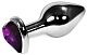 Серебристая анальная пробка с фиолетовым кристаллом-сердечком - 9 см.