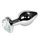 Серебристая анальная пробка с прозрачным кристаллом-сердечком - 6,8 см.