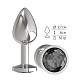 Серебристая анальная втулка с чёрным кристаллом - 7 см.