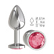 Серебристая анальная втулка с малиновым кристаллом - 7 см.