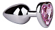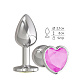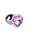 Серебристая анальная втулка с розовым кристаллом-сердцем - 7 см.