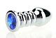 Серебристая фигурная анальная пробка с синим кристаллом - 10,3 см.