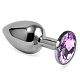 Серебристая гладкая анальная пробка с сиреневым кристаллом - 7,5 см.