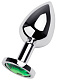 Серебристая коническая анальная пробка с зеленым кристаллом - 8 см.