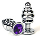 Серебристая ребристая анальная пробка с фиолетовым кристаллом - 8 см.