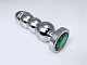 Серебристая закругленная анальная пробка-ёлочка с зеленым кристаллом - 13 см.