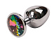 Серебряная металлическая анальная пробка с радужным стразиком - 7,6 см.