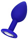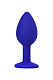 Синяя силиконовая анальная пробка Brilliant с прозрачным кристалллом - 7 см.