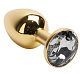 Золотистая анальная пробка с белым кристаллом - 7,6 см.