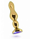 Золотистая анальная пробка с фиолетовым кристаллом - 14 см.